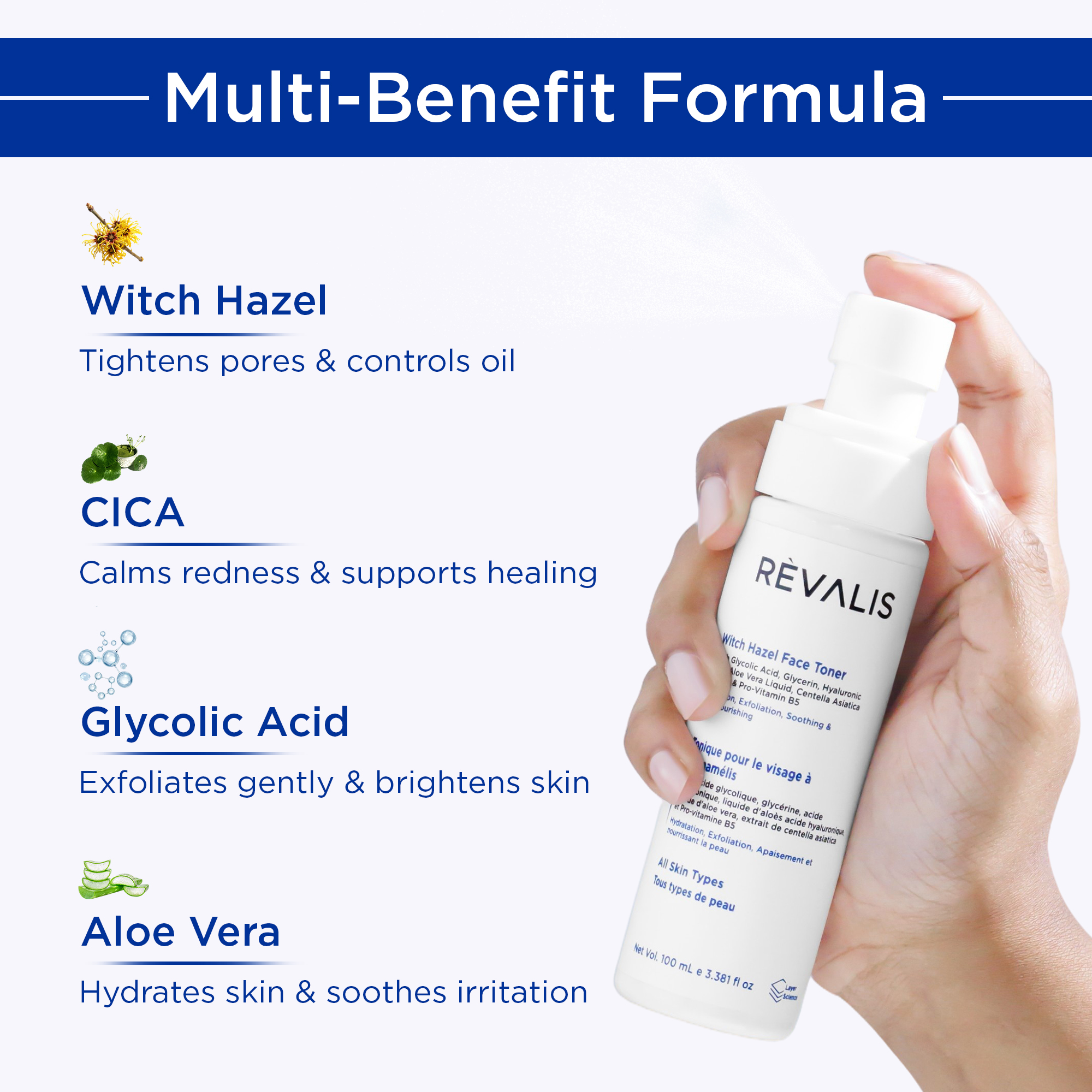 Witch Hazel Extract – A natural astringent that helps tighten pores, reduce oiliness, and calm inflammation.